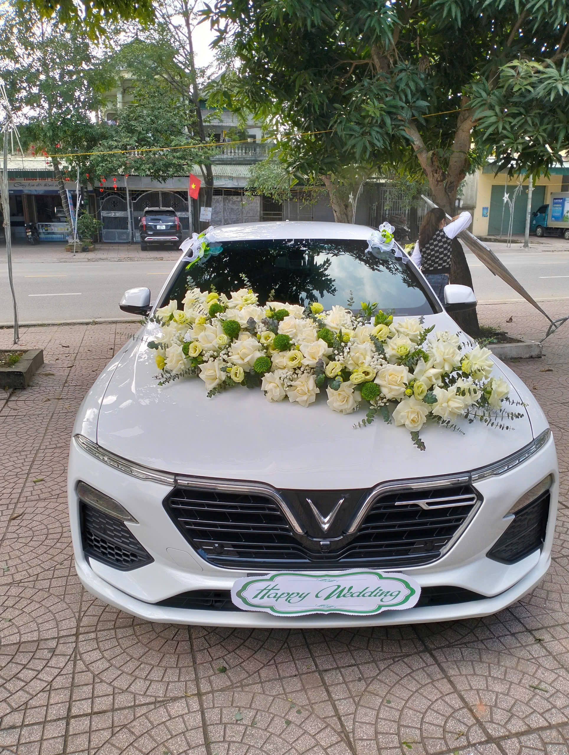 • Bao Gồm: Trang trí hoa chính nắp capo, nơ tay nắm cửa, hoa gương chiếu hậu, và bảng “Happy Wedding” tinh tế.